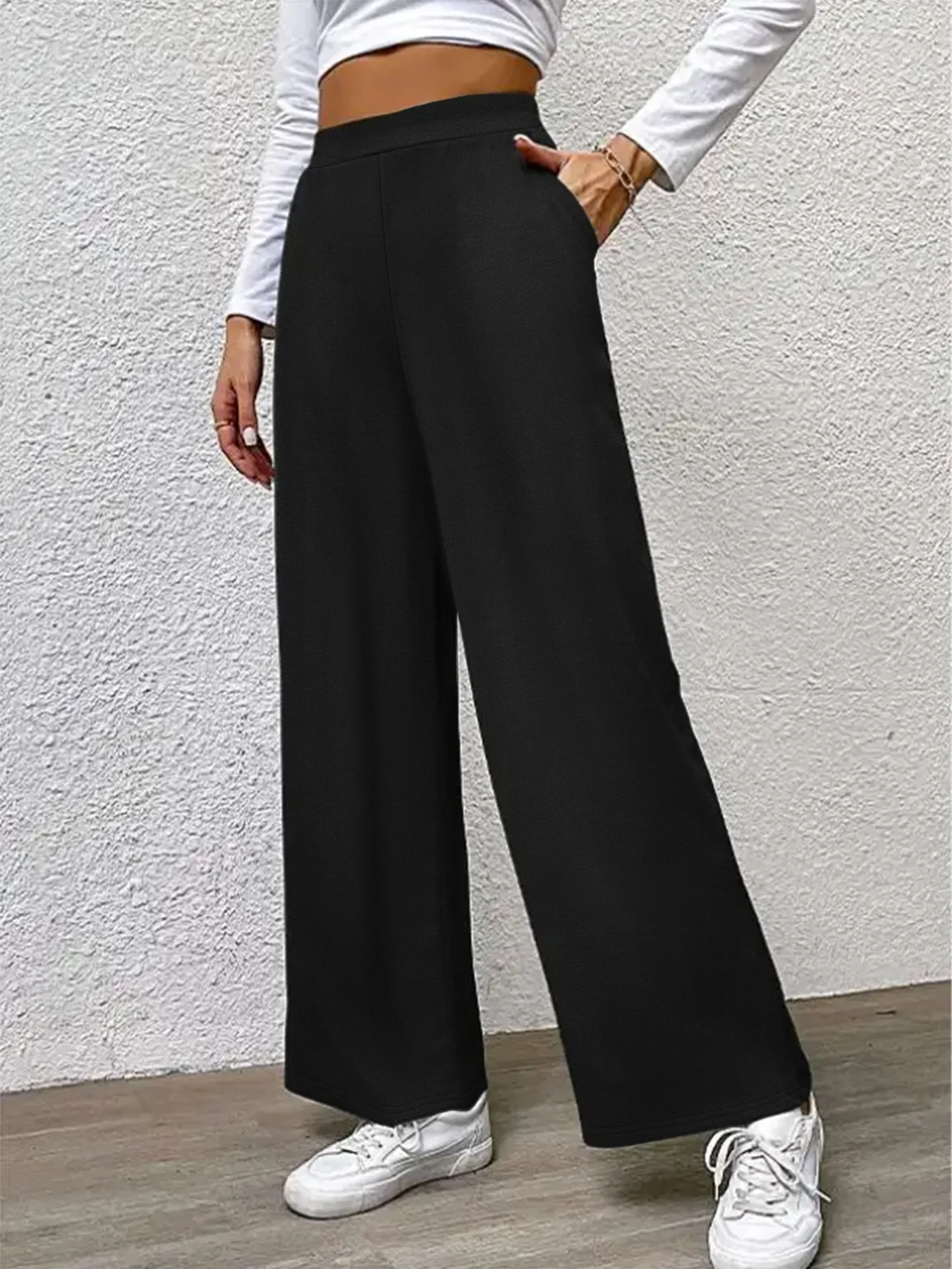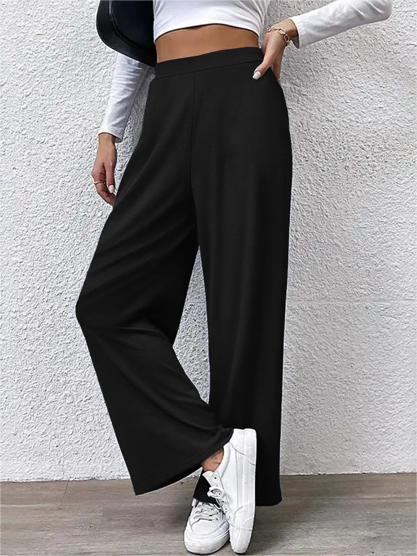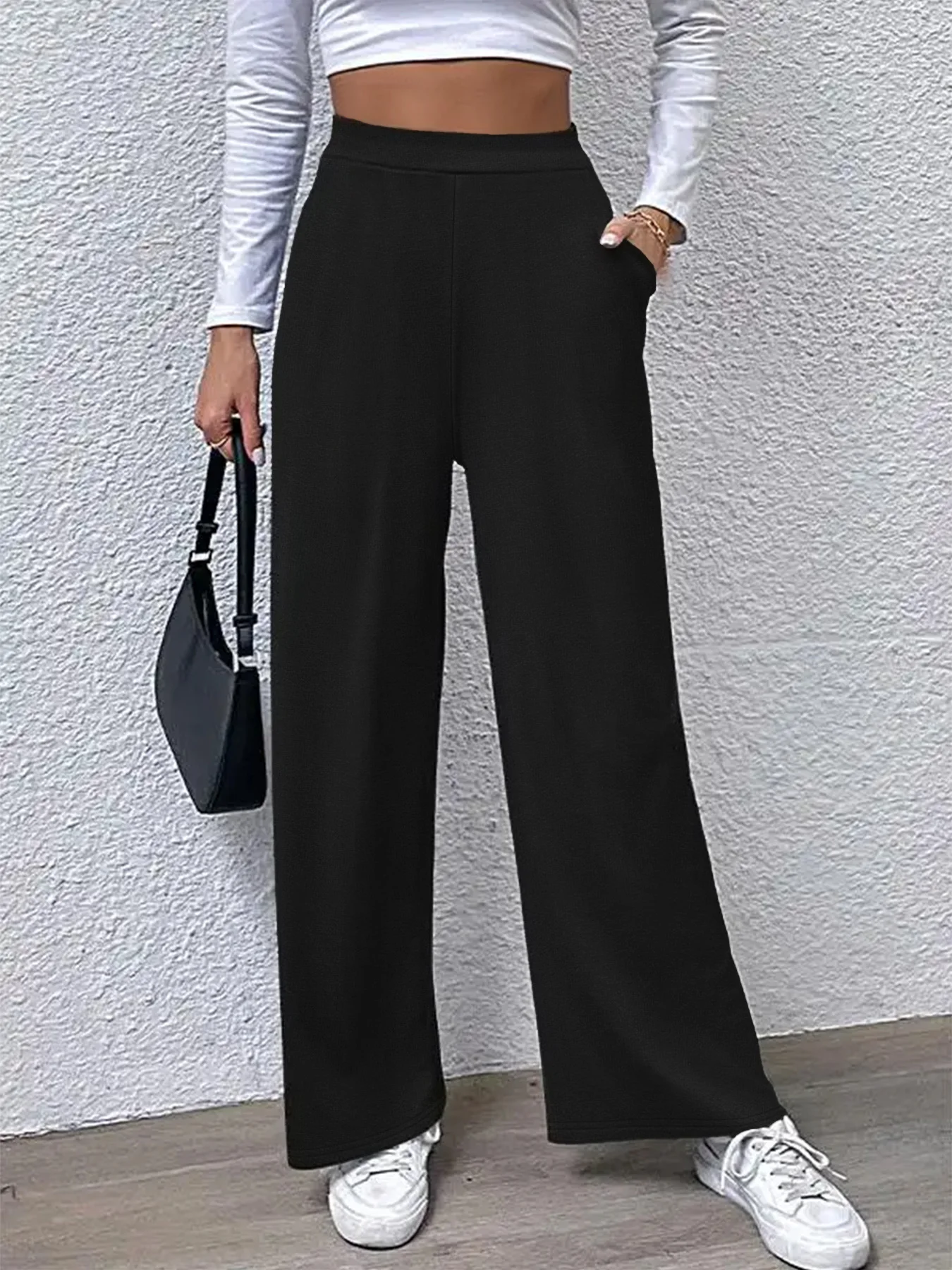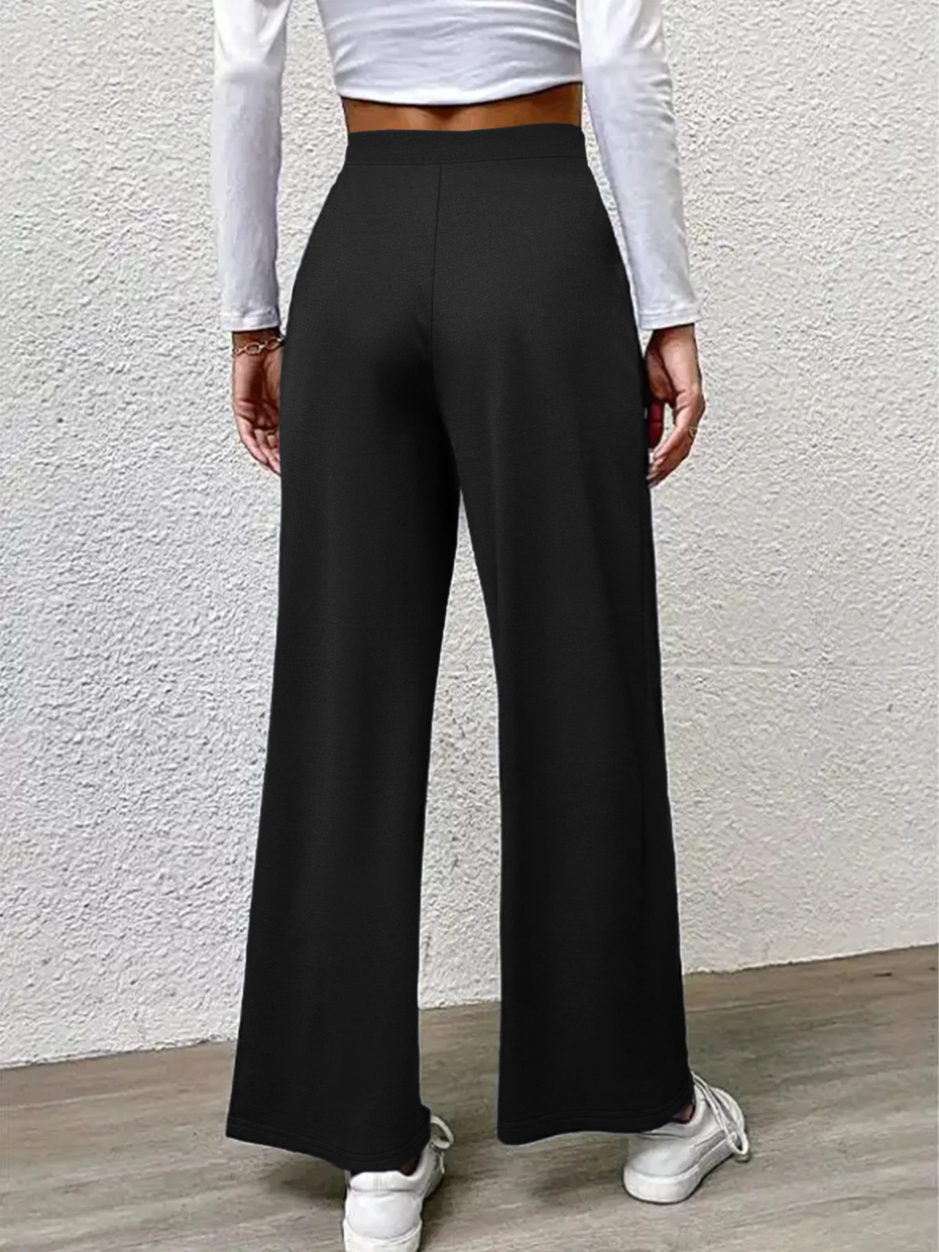 2025 Casual Straight Leg Pants Women Elastic Waist Stretchy Slimming Solid Black Office Daily Trousers