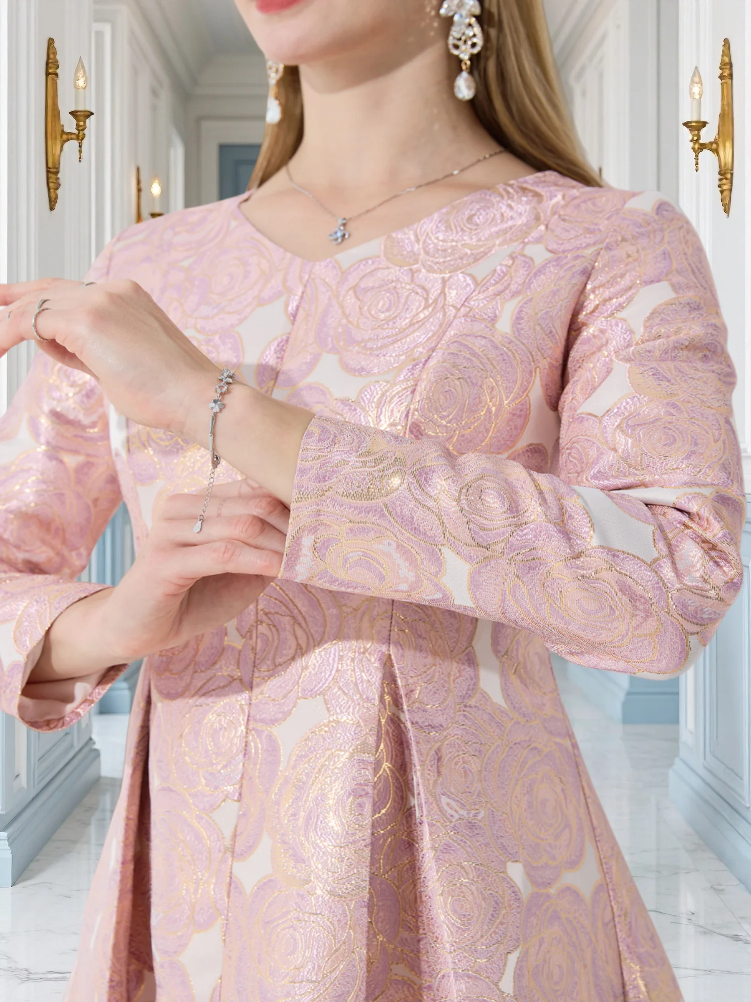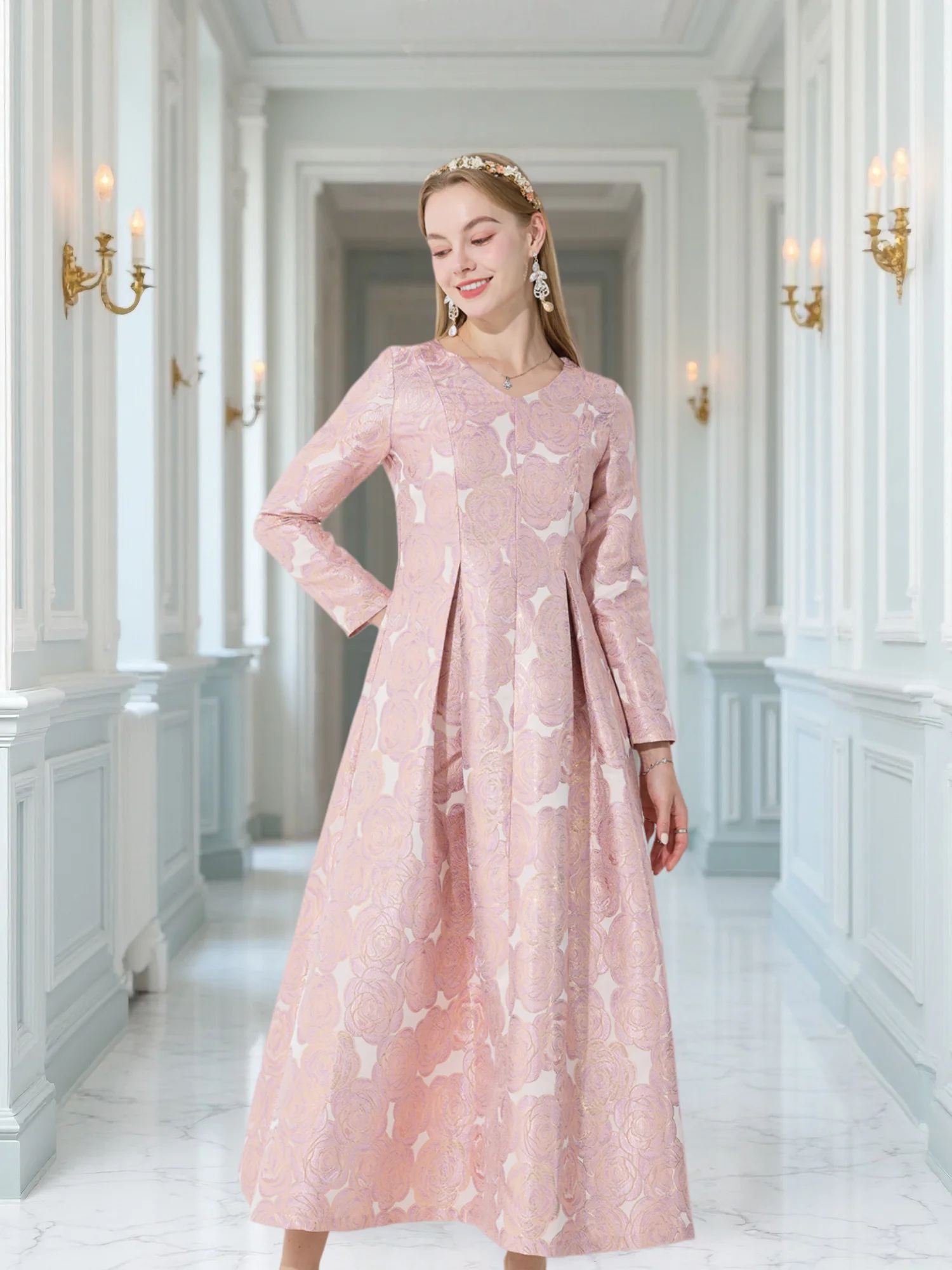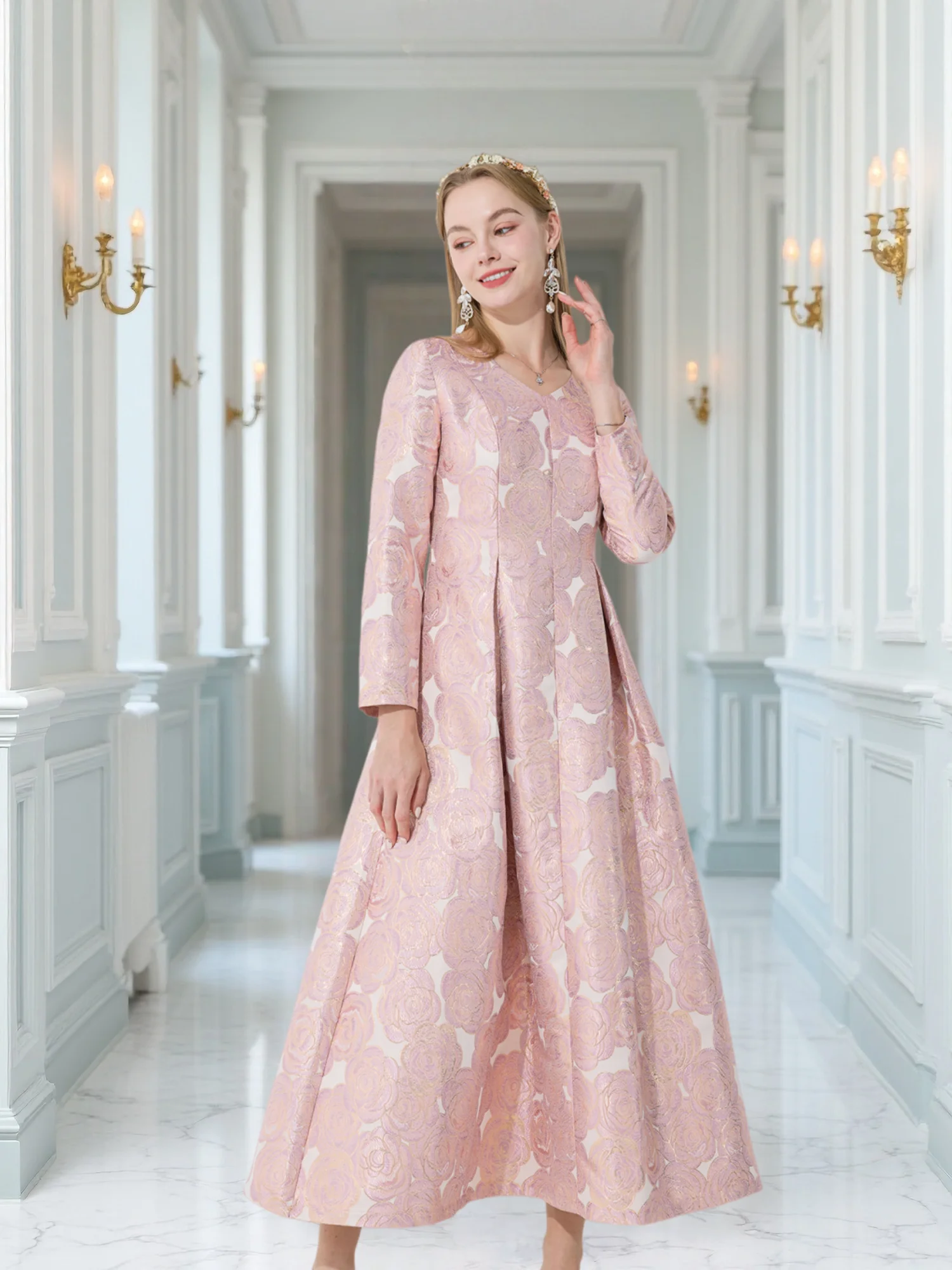 Elegant Women Long Maxi Jacquard Dress Party Fashion Floral Clothing New Arrival Evening Vintage Ladies Ball Gown Vestido
