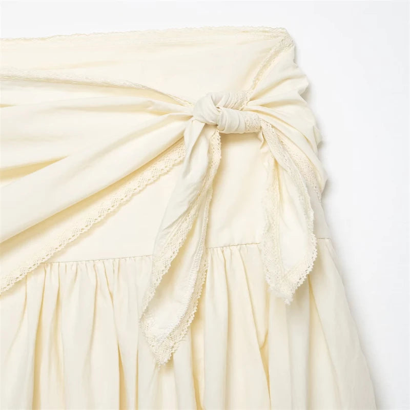 New Women's Hot Girl Style High-Waist A-Line Lace Scarf Decorated Mid-Length Dress 2026 Spring New Arrival