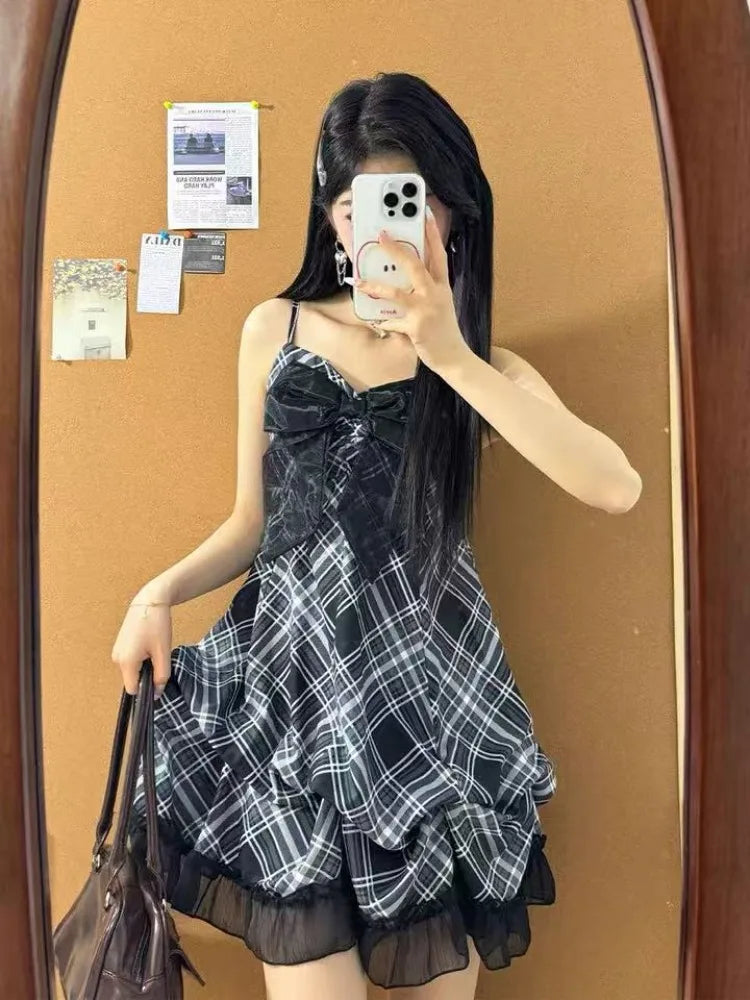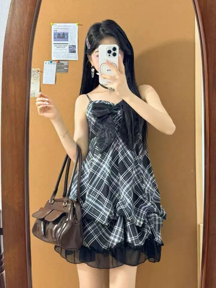 2026 Japanese Vintage Style Strap Dress Women Korean Fashion Black Lace Cami Dresses Summer Sweet Patchwork New One Piece Dress