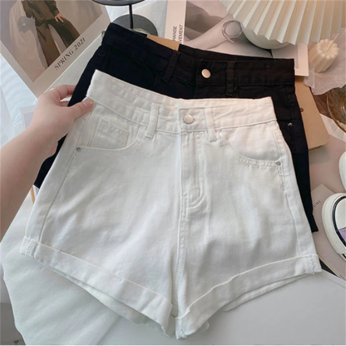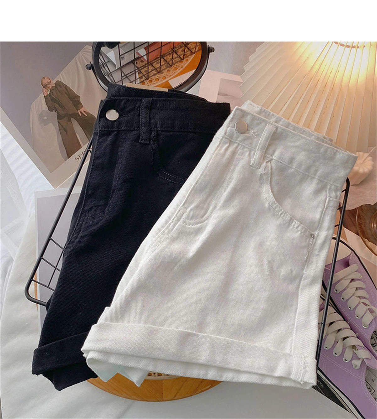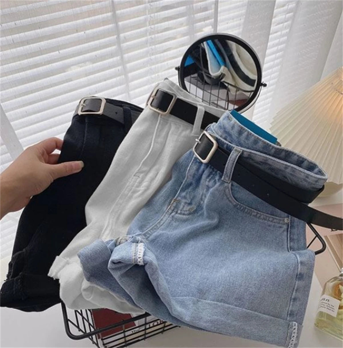High Waist Wide Leg Short Jeans Women's Summer Loose Pocket Korean Style A-Line Casual Hot Pants Blue Denim Shorts Streetwear