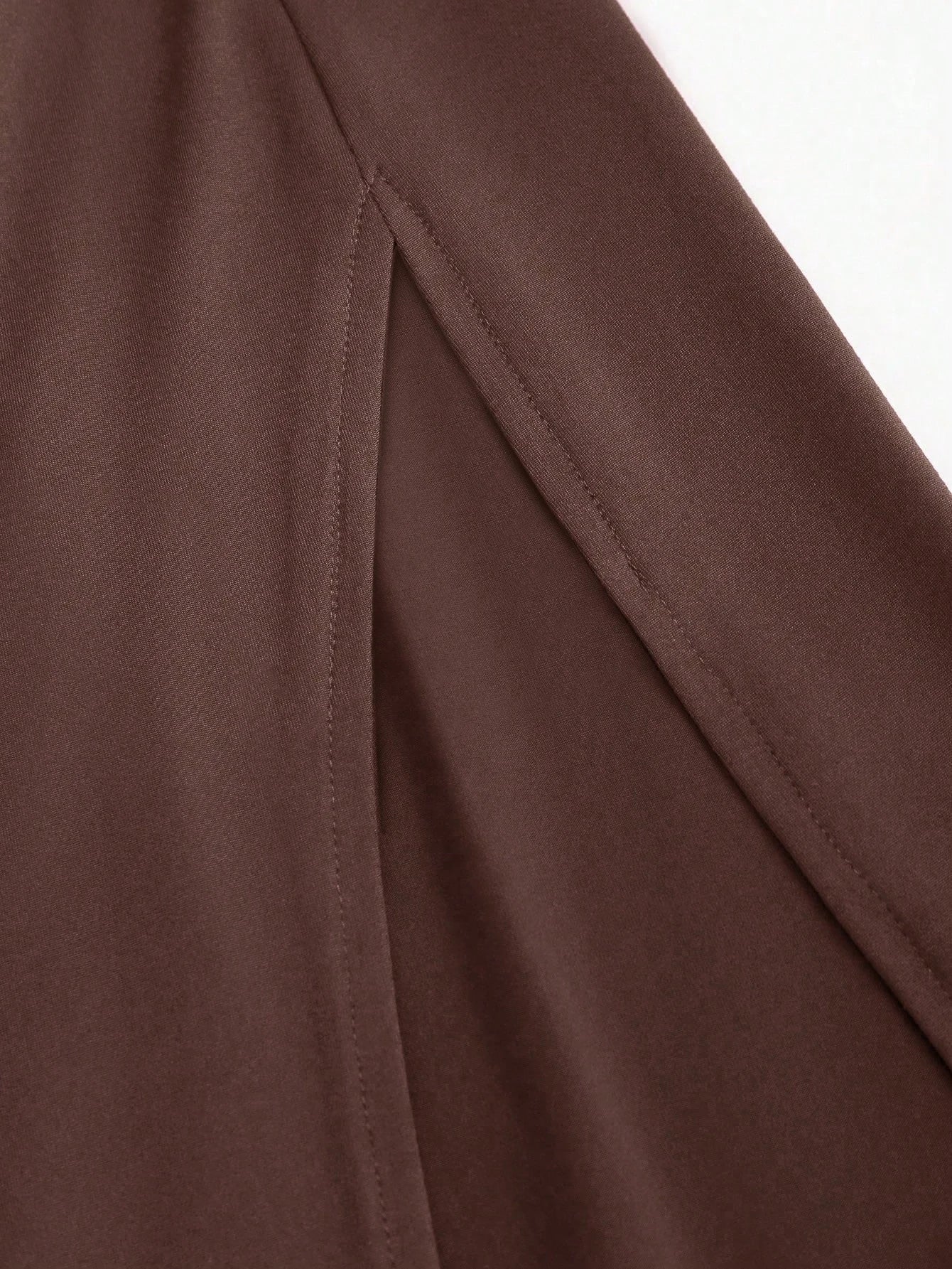New Fashionable and Elegant Hanging Neck Top+Split Simple Solid Half Skirt Set