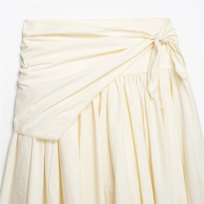 New Women's Hot Girl Style High-Waist A-Line Lace Scarf Decorated Mid-Length Dress 2026 Spring New Arrival