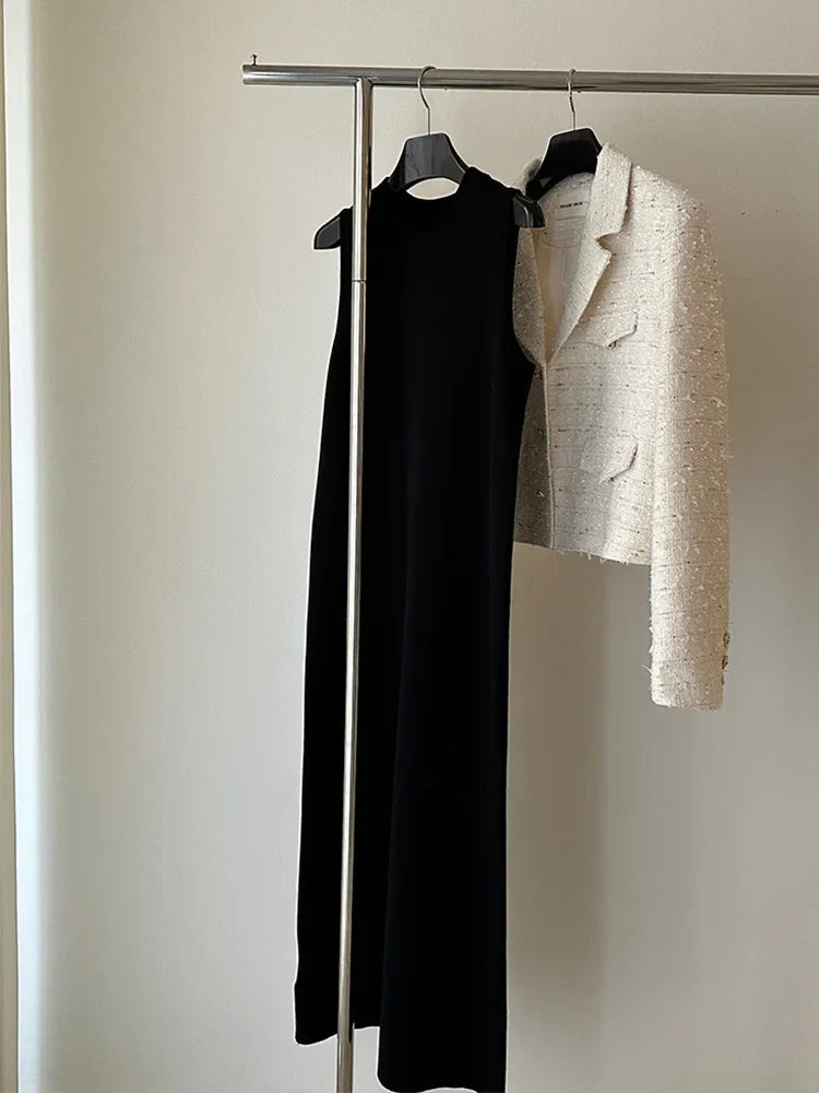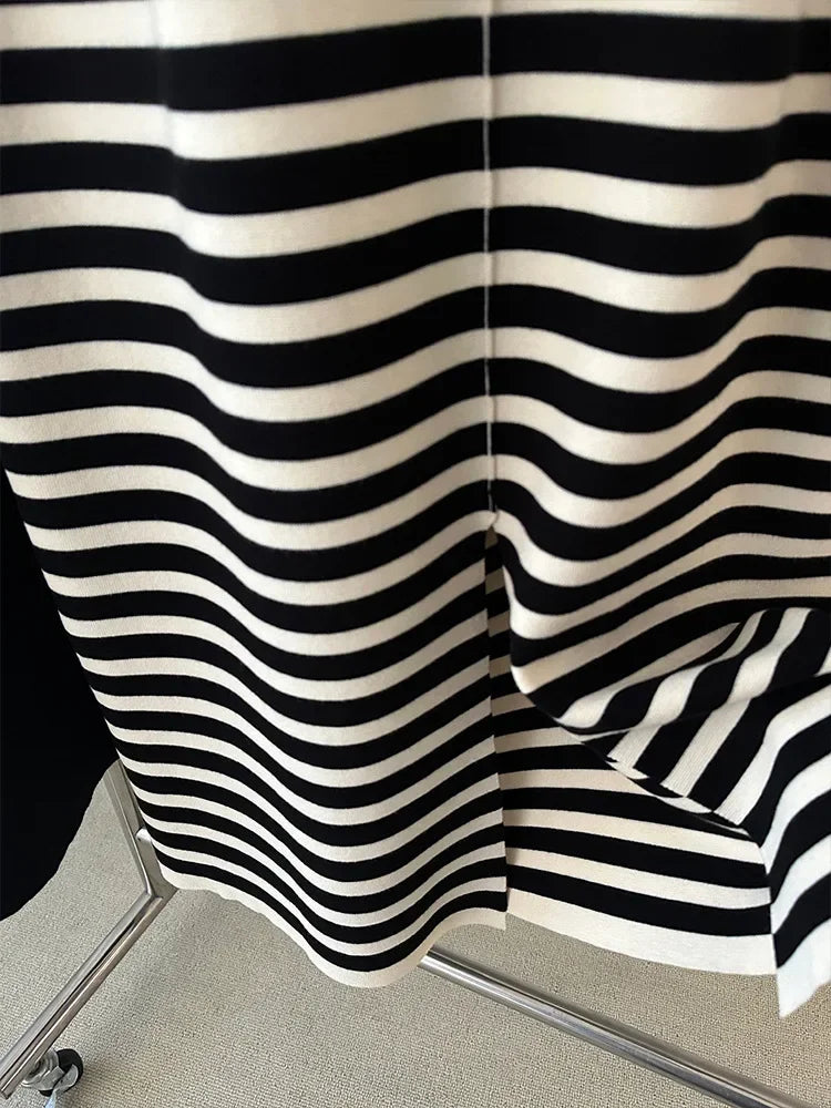 striped knitted sleeveless vest dress for women in summer, loose and slimming, high waist, straight tube skirt, retro