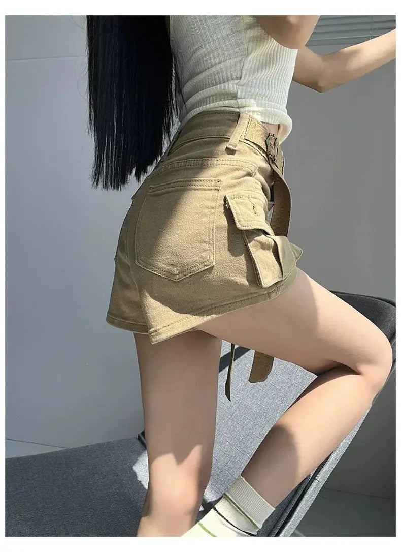 Women's High Waist Mini Skirt Y2K Denim Workwear Shorts Elastic Slimming Summer Hot Pants Trendy plus Size Skirts for Ladies